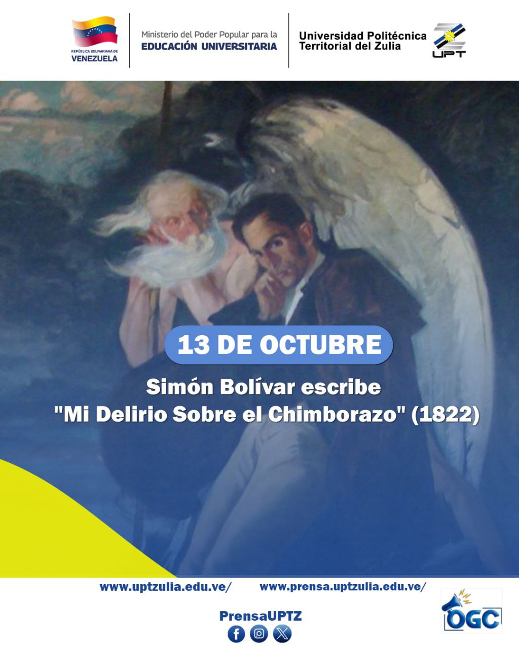 El 13 de octubre de 1822 Simón Bolívar escribió el poema «Mi delirio sobre el Chimborazo» , que surgió de una experiencia mística en la cima del volcán. El poema es una de las piezas más emblemáticas del romanticismo venezolano y expresa su visión de independencia y unidad para América.