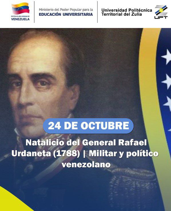 El 24 de octubre de 1788 nace en Maracaibo, el G/J Rafael Urdaneta, militar, político, estadista, prócer independentista y el “más leal de todos los leales a Simón Bolívar”.